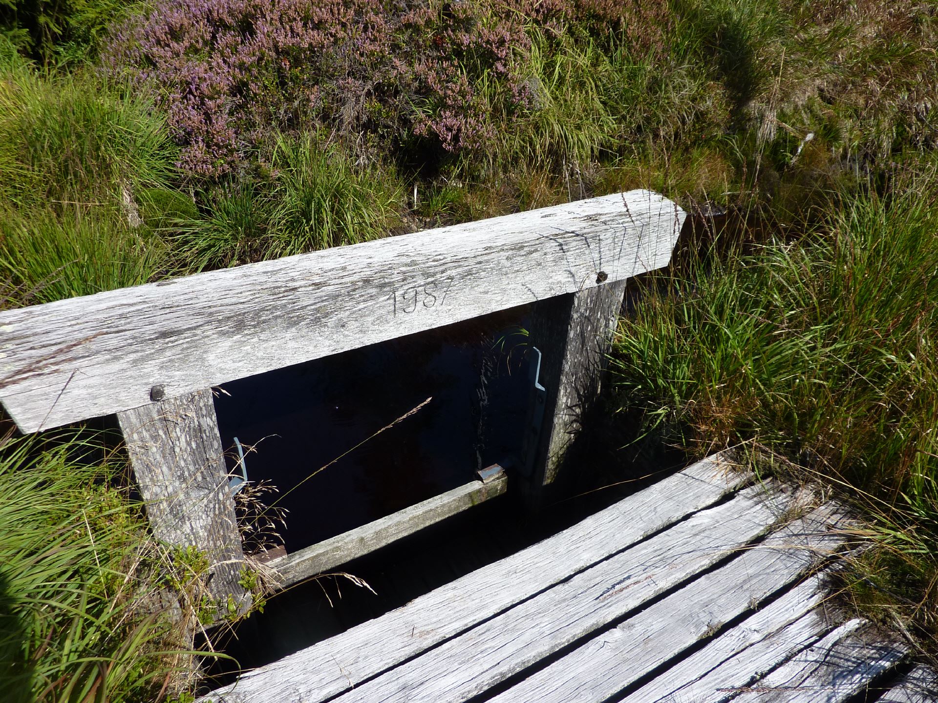 Der Fehlschlag hat sein Aussehen komplett gewandelt. Nicht nur das er deutlich breiter geworden ist, auch sein Abfluss hat sich verändert. Wo heute hinter dem Joch ein Holzverzug zu sehen ist war 1964 noch ein Eisenrohr.