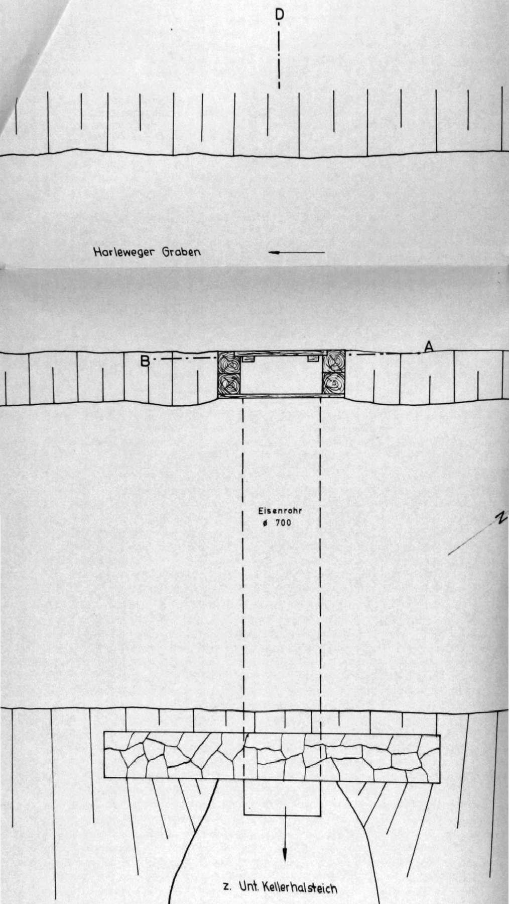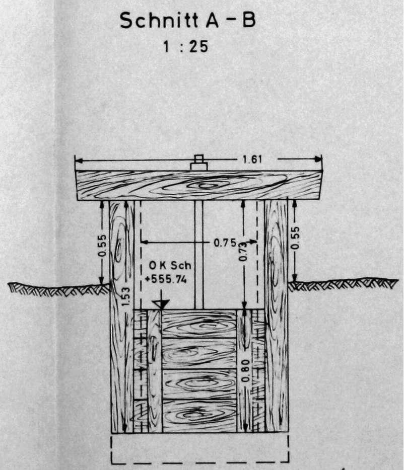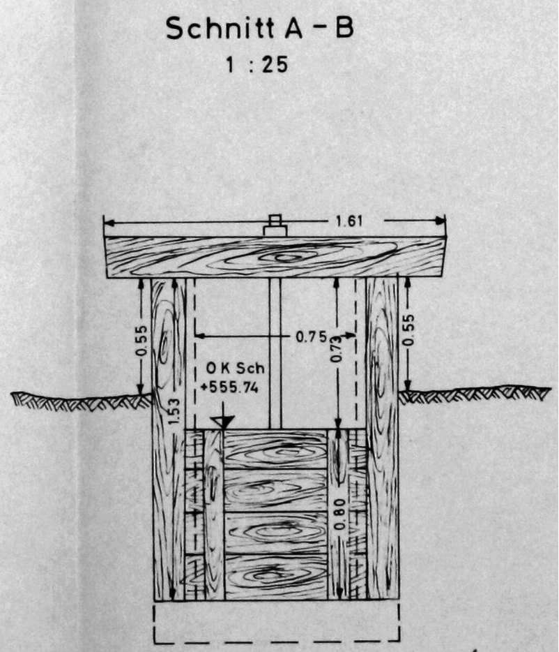 >>Zu den Fehlschlägen git es Zeichnungen der Preussag von 1964, die heute als gute Dokumentation der damaligen Bauwerke angesehen werden können. Allerdings hat die Preussag selbst nach 1964 bis in die 1970er Jahre noch Maßnahmen an Teichen und Gräben durchgeführt, die durchaus den Bestand verändert haben. In den Jahren 1971 bis 1981 hat die Landesforstverwaltung nach und nach Anlagen des Oberharzer Wasserregals in ihre Betreuung übernommen. Auch in dieser Phase sind bestimmte Bauwerke umgebaut oder in anderer Form wiederhergestellt worden. Dies wird allerdings nur einen Teil der Fehlschläge betroffen haben, denn die meisten Fehlschläge entsprechen immer noch dem Stil und den Abmessungen von 1964.