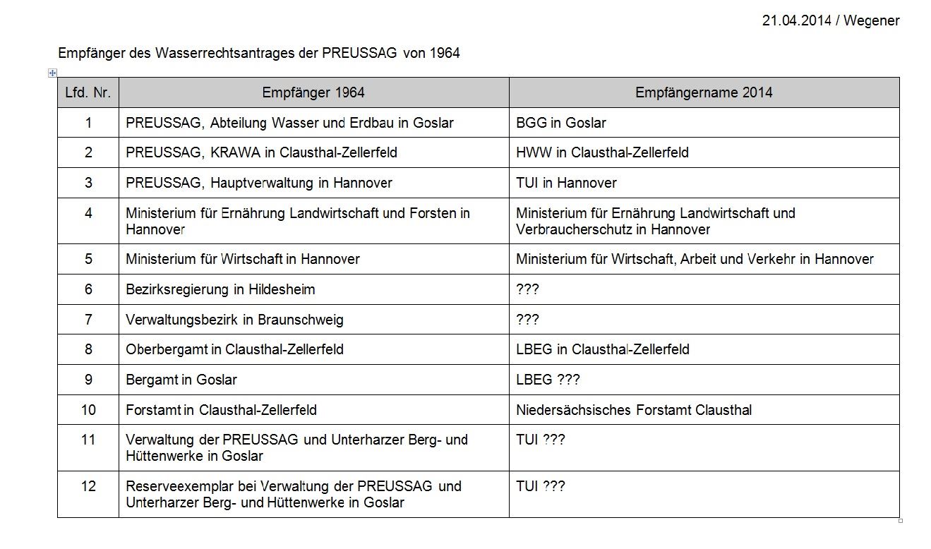 In der Folge musste der damalige Betreiber der Anlagen der Oberharzer Wasserwirtschaft, die Preussag, alle bestehenden, in Betrieb befindlichen Anlagen neu beantragen, so als wären diese Neu.
