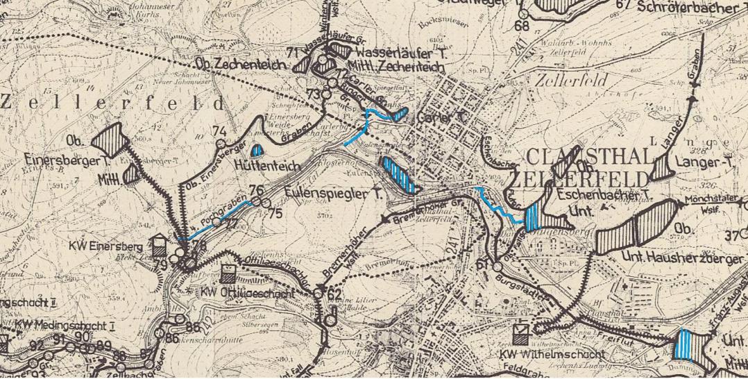 Quelle Karte: Ausschnitt aus: Oberharzer Wasserwirtschaft, Übersichtsplan der der Betriebsanlagen NLA HSTA BaCl Nds. 540 Acc. 2 Nr. 776