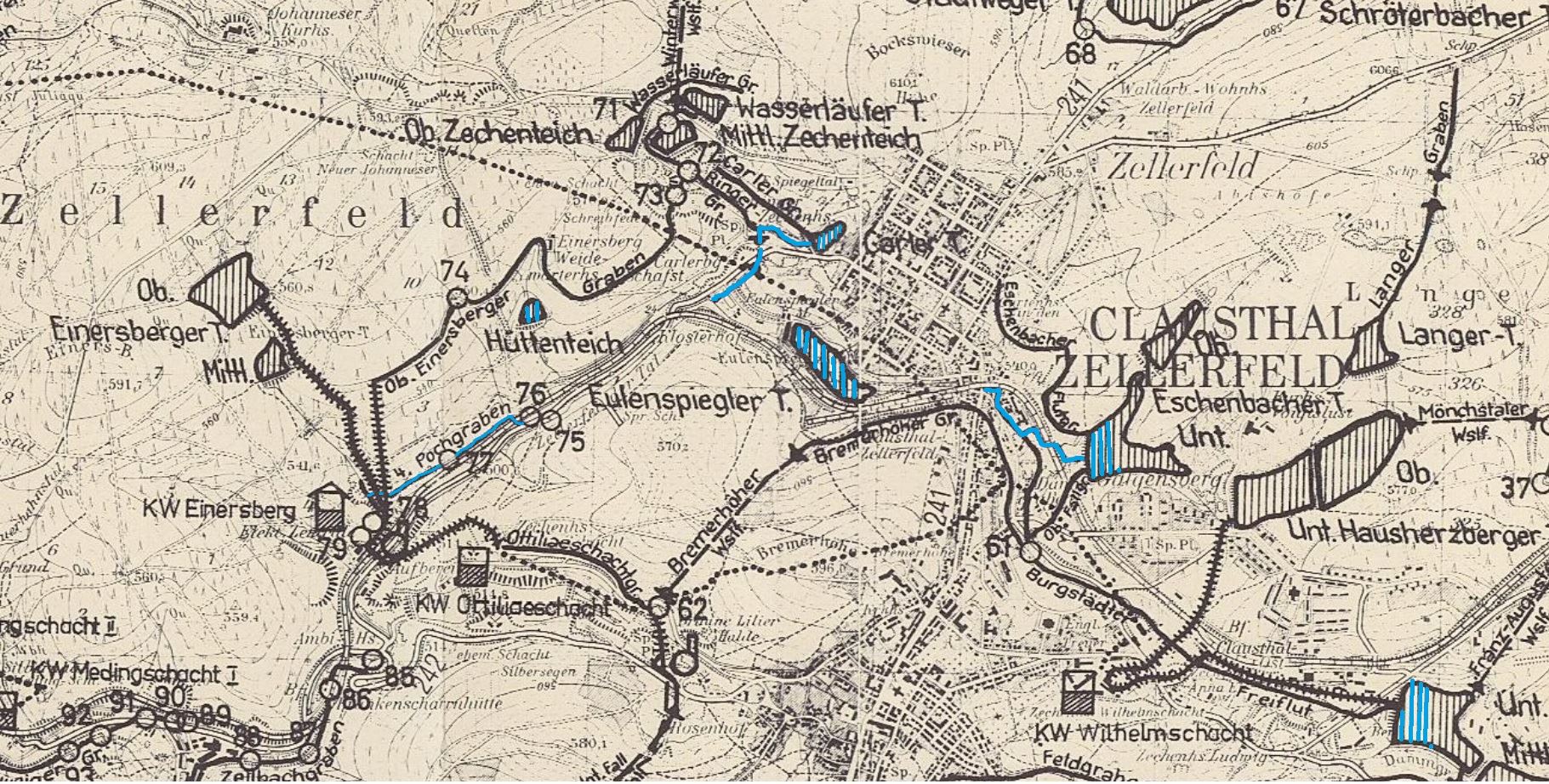 Quelle Karte: Ausschnitt aus: Oberharzer Wasserwirtschaft, Übersichtsplan der der Betriebsanlagen NLA HSTA BaCl Nds. 540 Acc. 2 Nr. 776