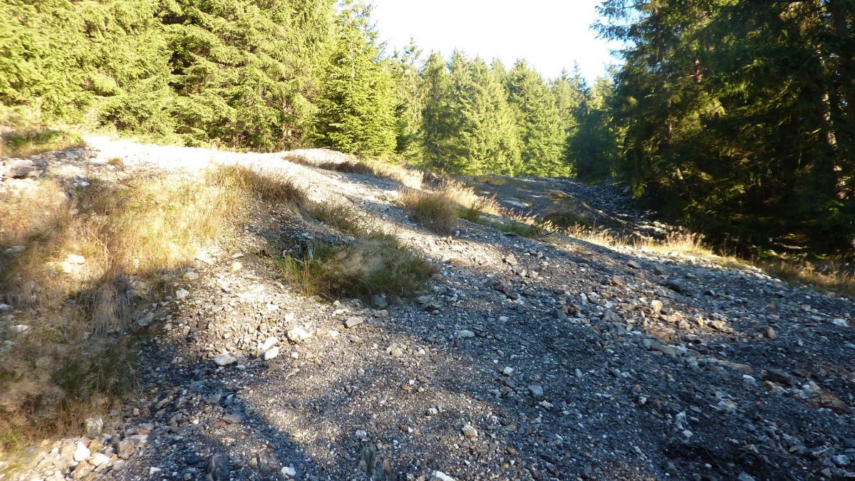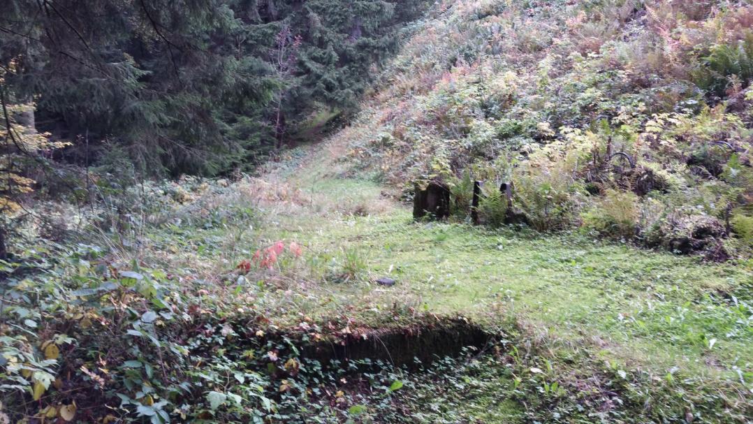 ..Reste der Grube sind noch sichtbar, jedoch versperrt und eingezäunt. Das Betreten der Absperrungen sollte tunlichst unterbleiben, denn die Löcher im Boden sind senkrecht und sehr tief.<<