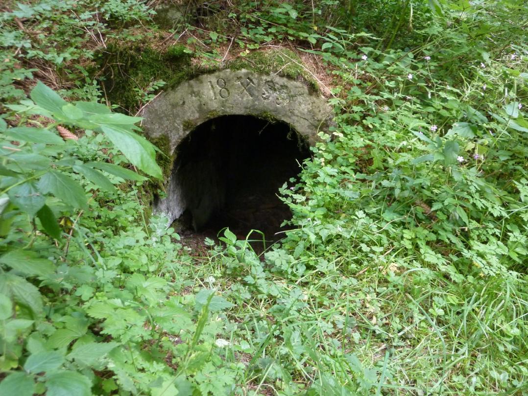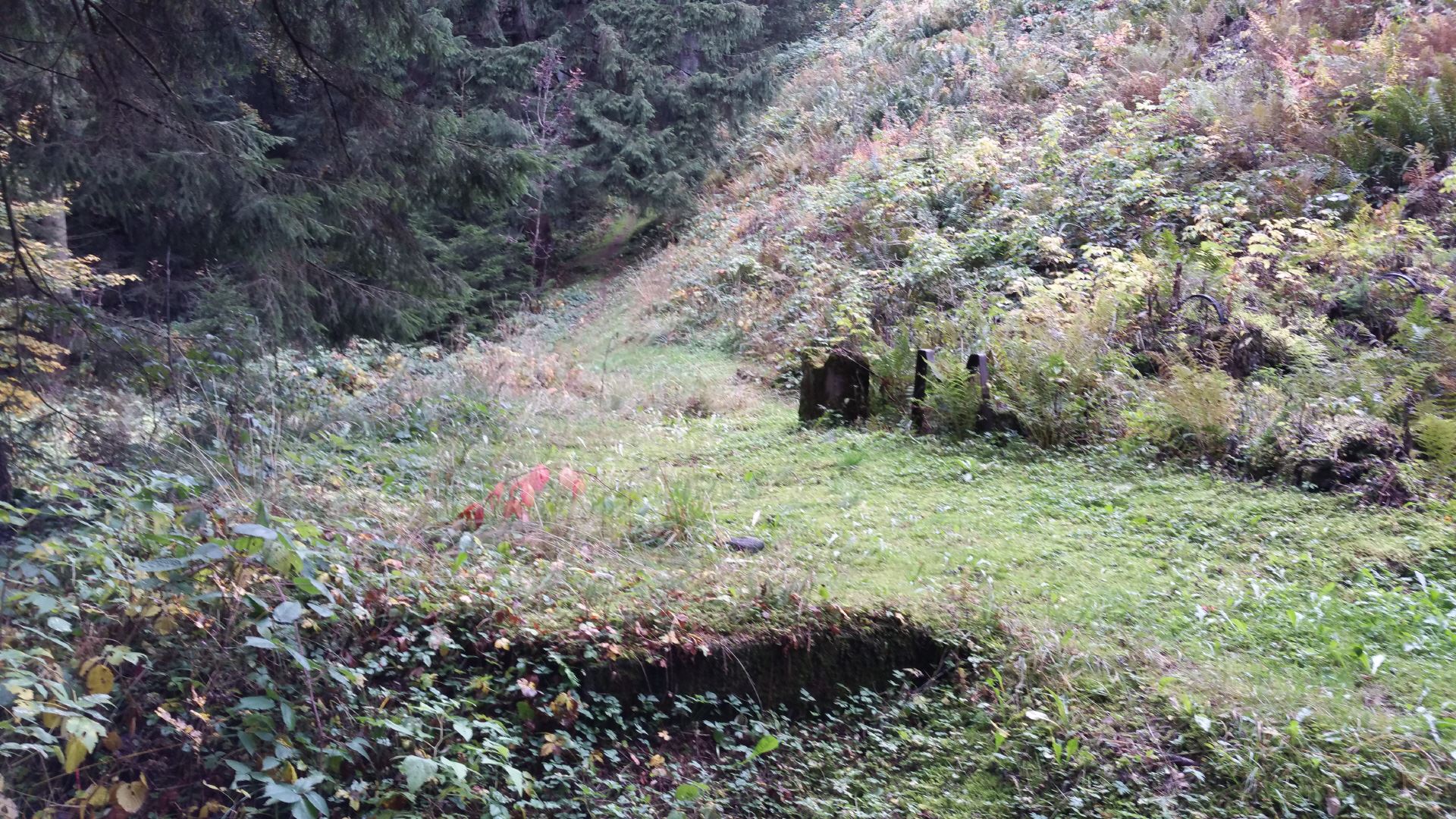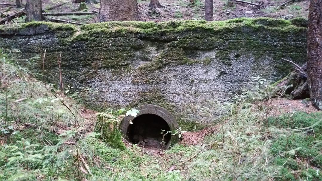 Die Reste des Wasserschlosses der Turbinenanlage von 1899 oberhalb der Fassung des Julianer Grabens.