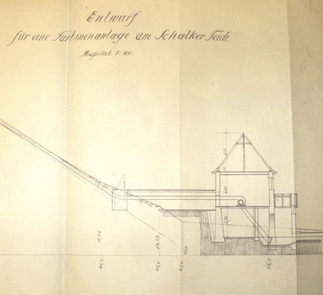 1923 beantragte der Verband der Eisenbahnvereine, der ein Eisenbahnerheim in Festenburg betrieb, eine Turbinenanlage am Unteren Schalker Teich, die auch ausgeführt wurde.
