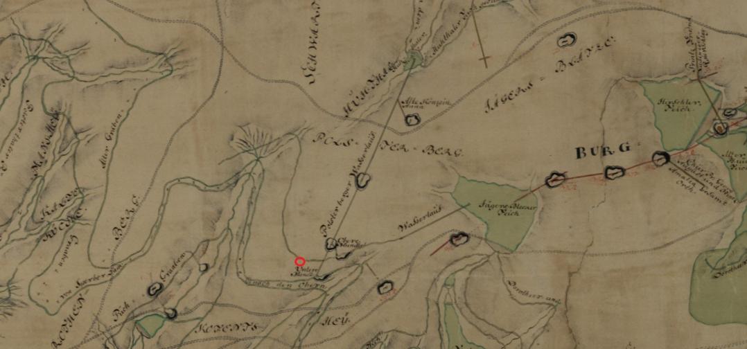 Quelle: Ausschnitt aus der Karte von Sandkuhl; HSTAH BaCl Rissarchiv Nr. 997.