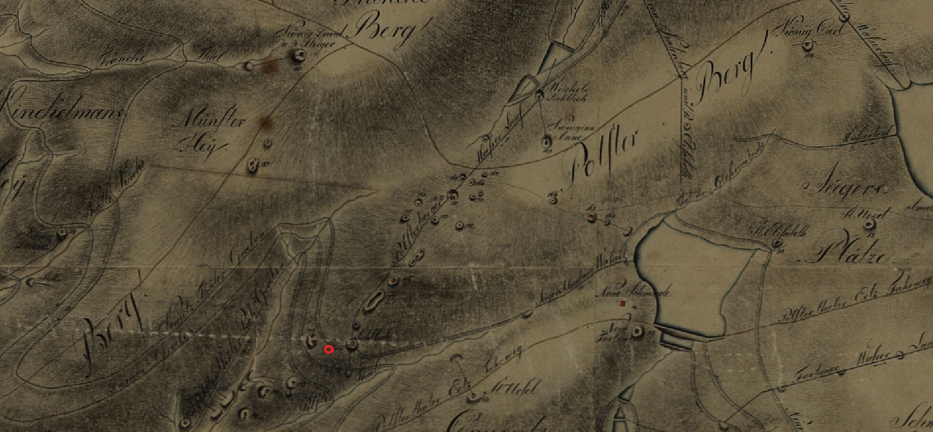 Quelle: Ausschnitt aus der Karte von Quensell; HSTAH BaCl Rissarchiv Nr. 2221