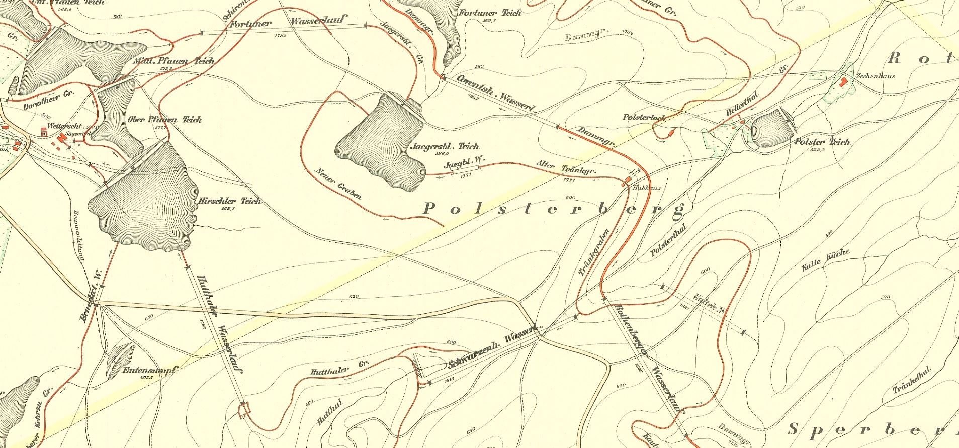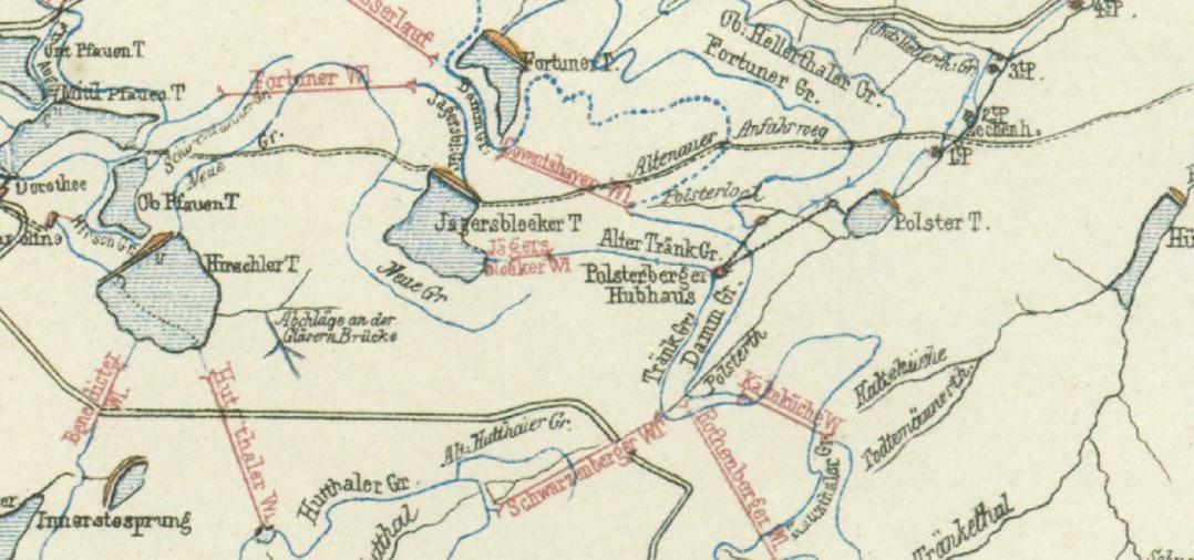 Auf dieser Karte ist auch gut zu sehen das das Untere Kunstrad in den Polster(thaler) Teich entwässert.