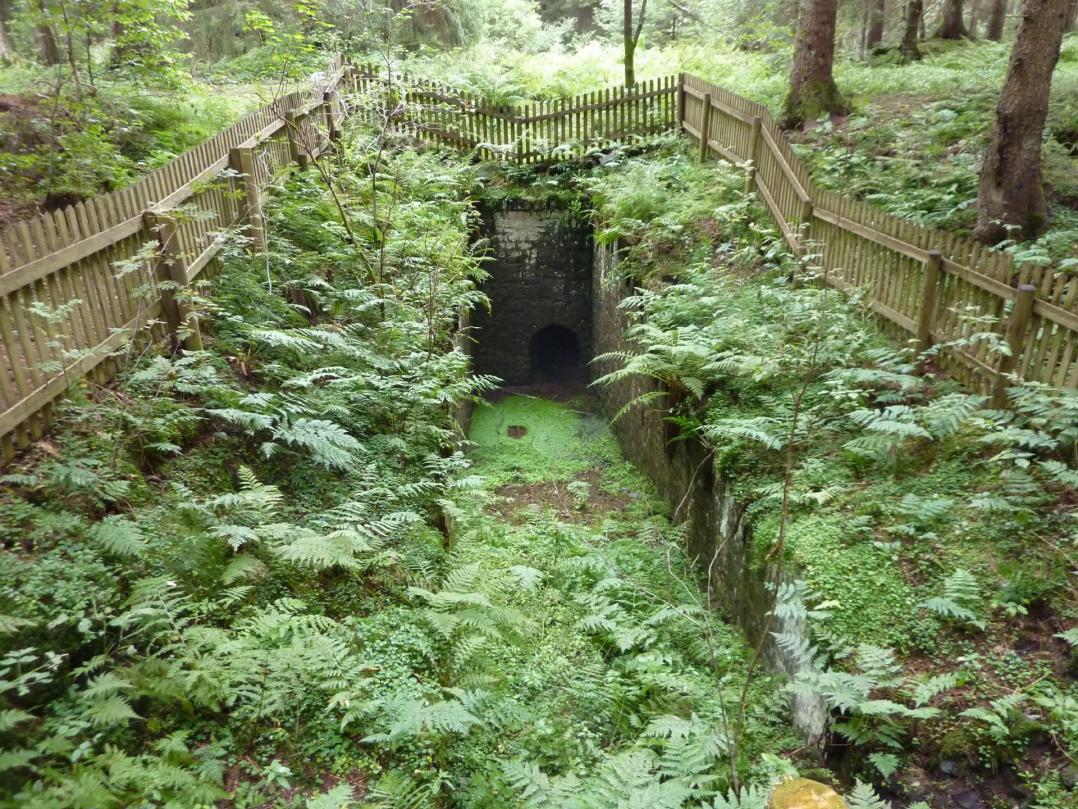 Auf dem Bild ist der Entnahmestollen der Hubkunst am Dammgraben und das Hubhaus zu sehen.