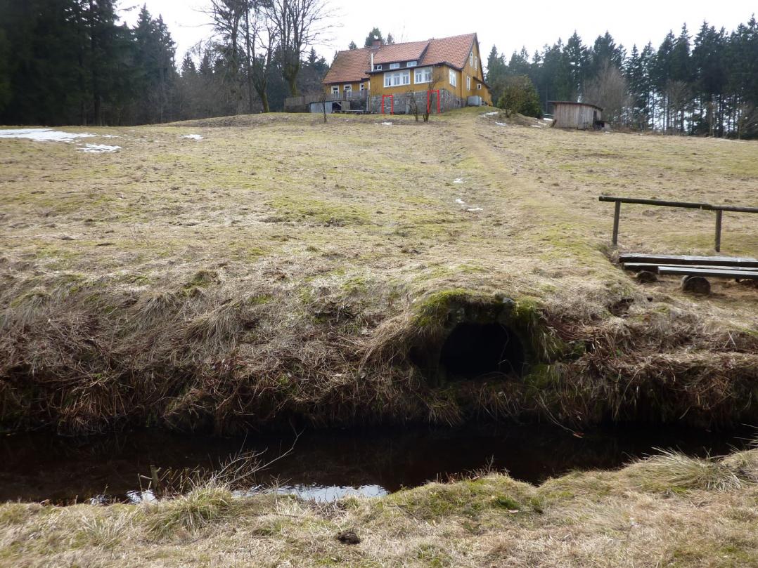 Das im Bild sichtbare Teilstück des "Neuen Tränkegrabens" bis zum Auslauf der Rothenberger Pumpenleitung ist nicht mehr wasserführend und bereits außer Betrieb, "abgeworfen" wie der Bergmann sagt.