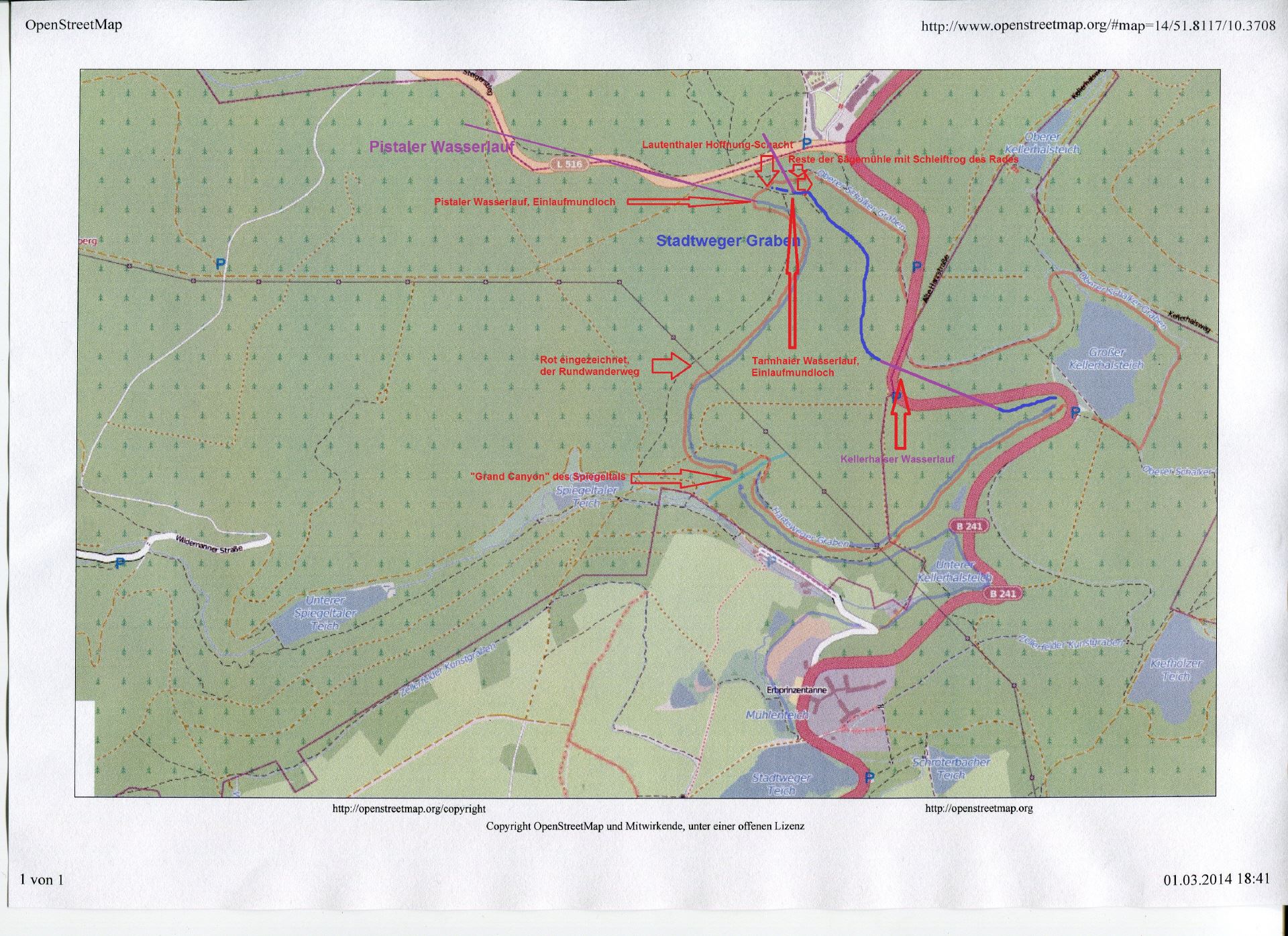 Harleweger Graben, Stadtweger Graben, Pistaler Wasserlauf, Lautentaler Hoffnung-Schacht, Reste der Sägemühle, Oberer Schalker Graben mit Gr. Kellerhals-Teich.